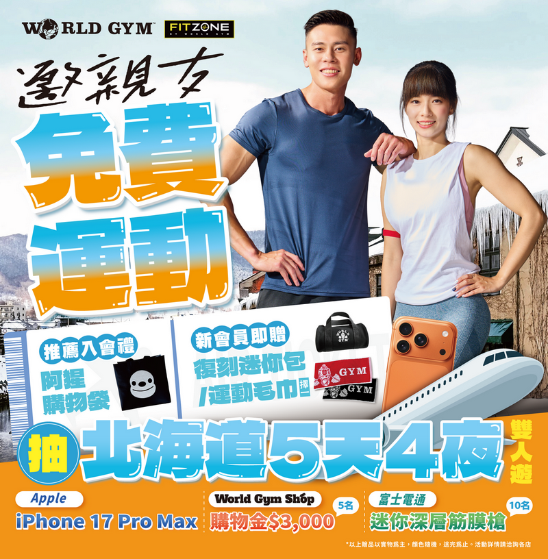 北海道5天4夜雙人遊、Apple iPhone 17 Pro Max、購物金等大獎!